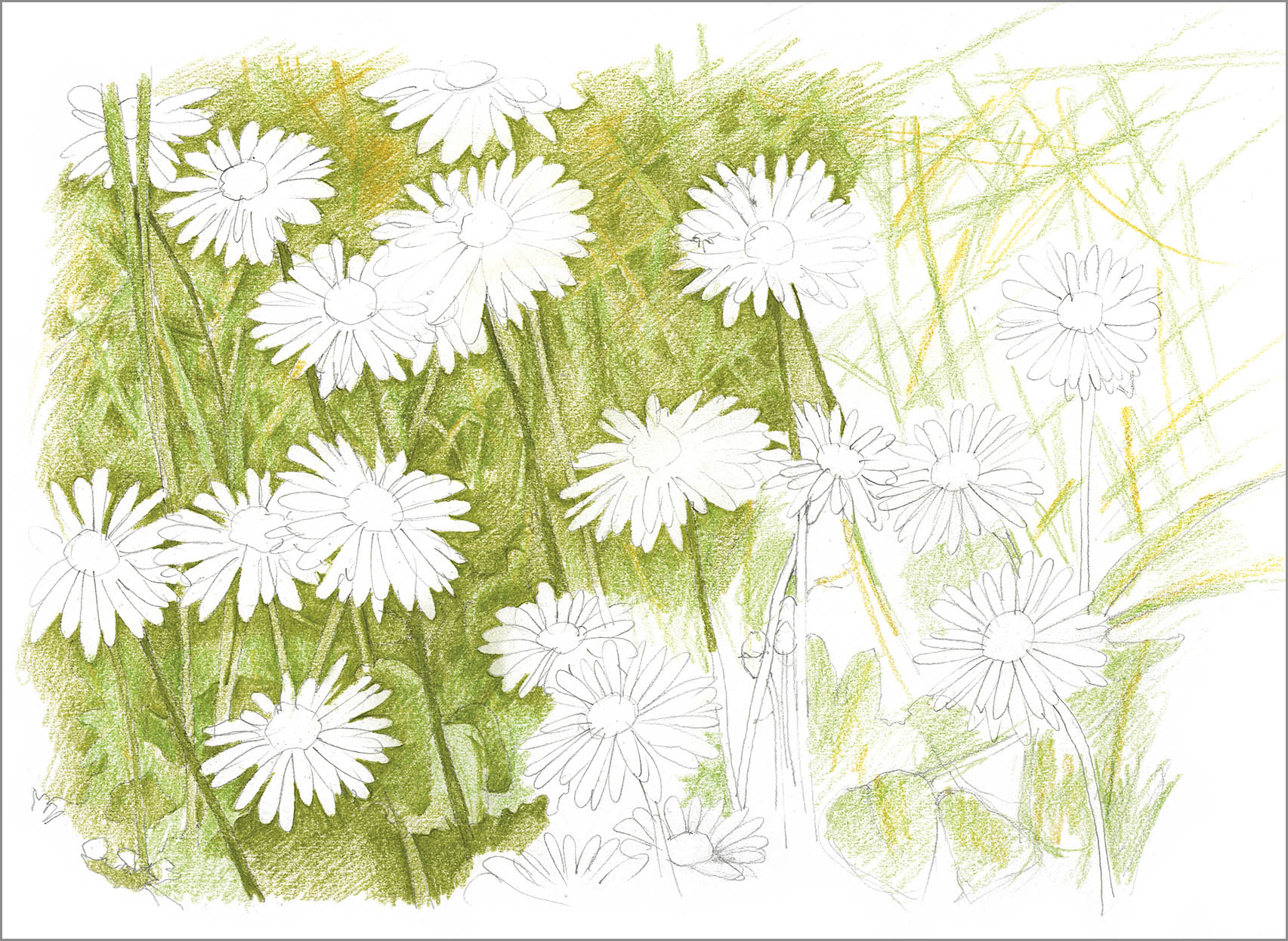 Schritt-für-Schritt-Illustrationen für ein ZeichenbuchTechnik: Bleistift und Buntstift